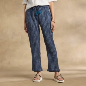 Beautifully textural. our easy Campari Pants are fashioned from striped yarn-dyed cotton with tacked cuffs. two patch pockets and elastic waistband with tasseled and beaded twisted rope tie. Machine wash. Imported. Exclusive. Sizes XS (0–2). S (4–6). M (8–10). L (12–14). XL (16–18). XXL (20–22). 25.5 inseam.