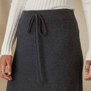 Our versatile. relaxed rib skirt is sure to become a staple of your wardrobe. Straight fit. with elastic/drawstring waistline and side slits for easy movement. Nylon/wool/spandex. Hand wash. Imported. Exclusive. Sizes XXS (00). XS (0-2). S (4-6). M (8-10). L (12-14). XL (16-18). Approx. 33.5l. Please size down for a more fitted look.